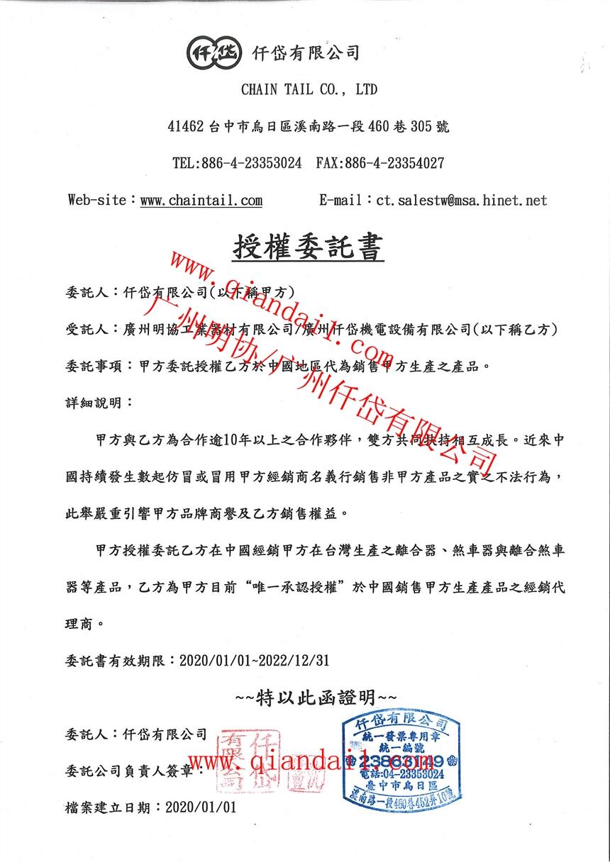 仟岱有限公司授權書